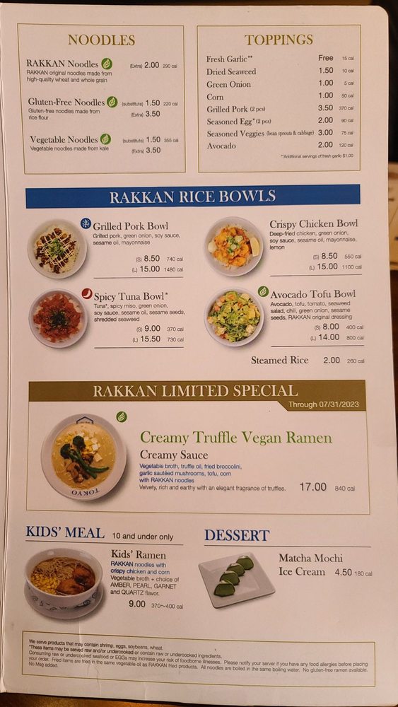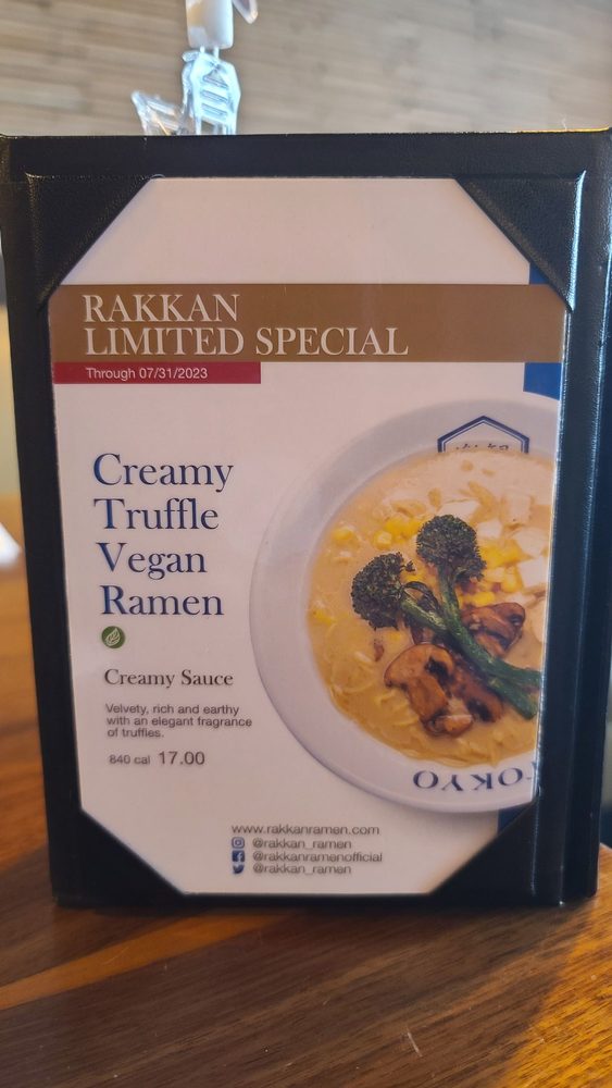RAKKAN Ramen in Redondo Beach offers a variety of options for both vegans and non-vegans. Their menu includes vegan ramen, fried Brussel sprouts, chicken buns, gyoza, and more. The broth is flavorful and the noodles have a perfect texture. Customers rave about the attentive staff and timely service. The ambiance is casual and trendy, perfect for a quick lunch or a late-night meal. The restaurant also offers outdoor seating and happy hour specials. The umami-packed broth in their Pearl (shio/salt) ramen is a standout dish, along with their spicy garnet ramen. Overall, RAKKAN Ramen provides a delicious dining experience with a focus on quality ingredients and excellent customer service.
